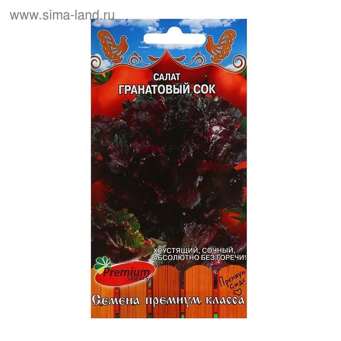 Раннеспелый сорт листового салата, высотой 23-27 см. Предназначен для получения свежих, нежных, сочных, хрустящих и без горечи листьев, а также для эффектного оформления сада. Листья очень красивые, с оригинальной тёмно-гранатовой окраской, с волнистым краем. После срезки долго остаются хрустящими и не вянут.