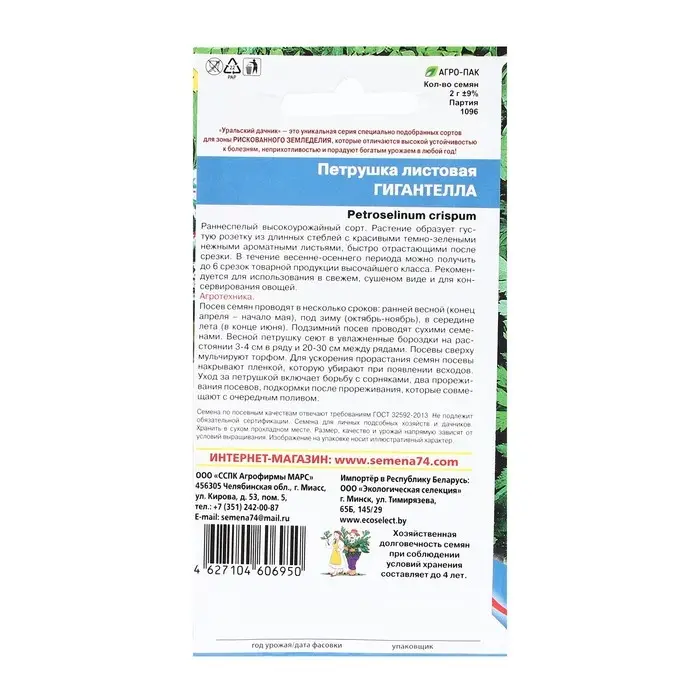 Семена Петрушка "Гигантелла - листовая", 2 г