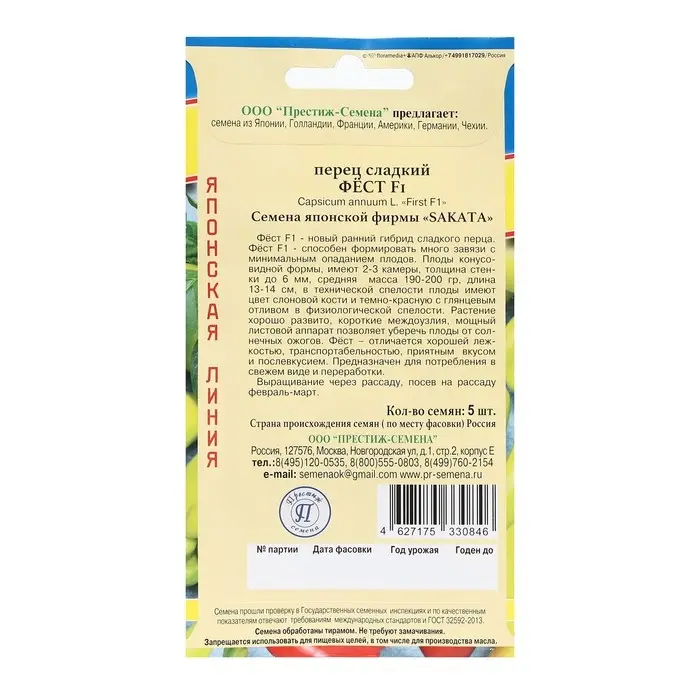Семена Перец "Джипси F1" сладкий, 5 шт