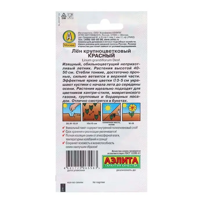 Семена Лен крупноцветковый Красный Одн Ц/П 0,5г