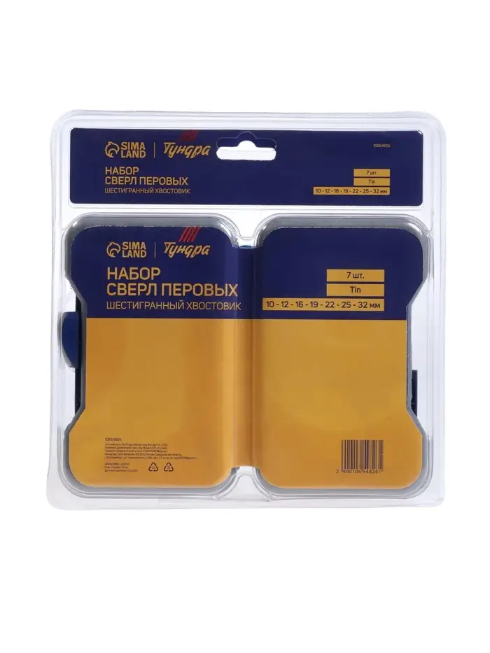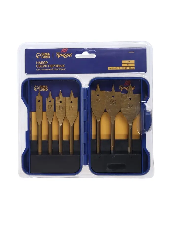 Набор сверл перовых ТУНДРА, Tin, шестигранный хвостовик, 10-12-16-19-22-25-32 мм, 7 шт.