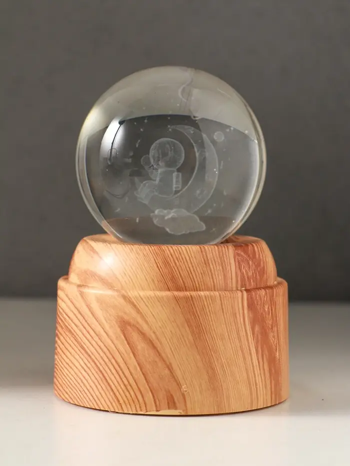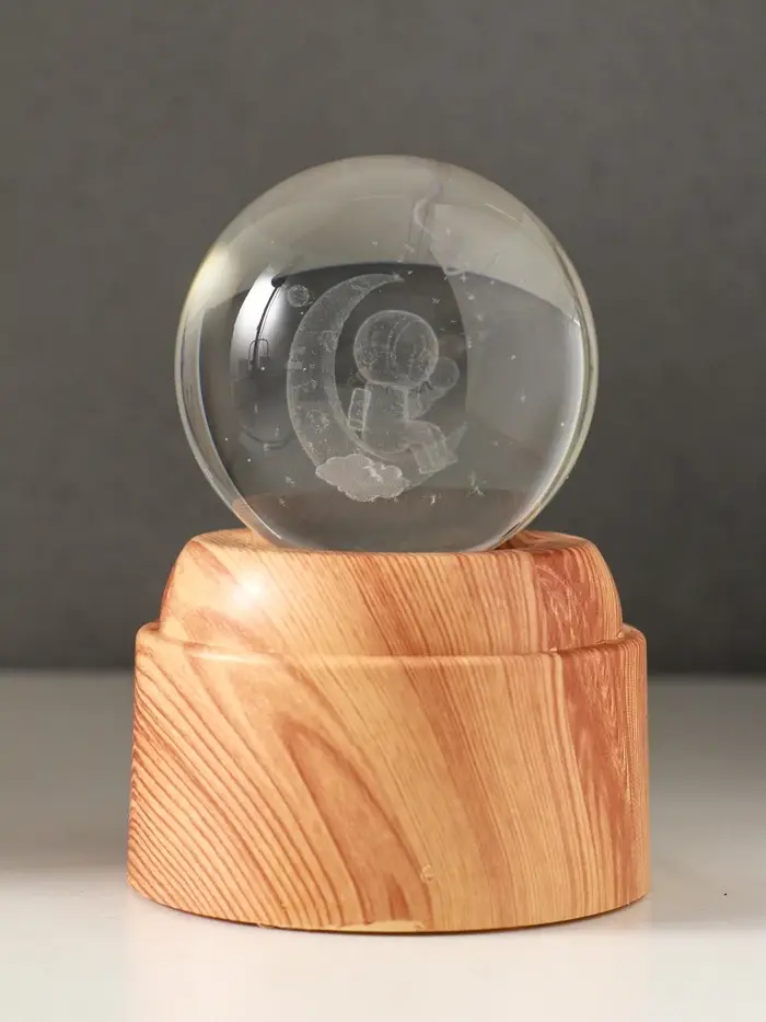 Сувенир стекло свет "Шар. Космонавт на месяце" 6хLED шар d=6 см, крутится, USB 7х7х10 см
