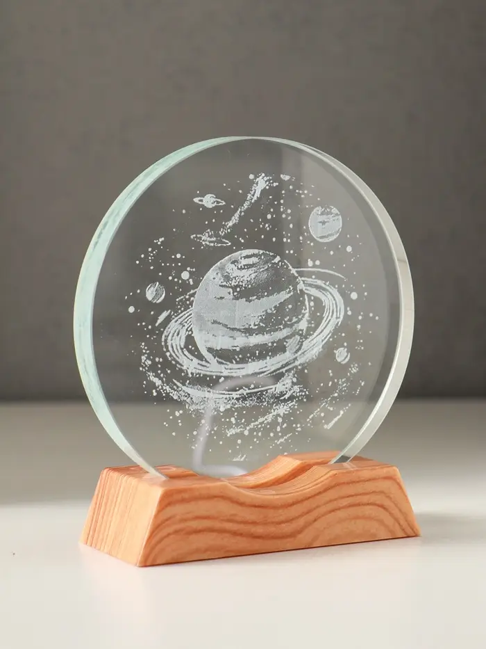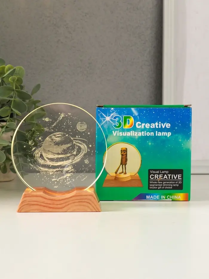 Сувенир стекло свет "Диск. Сатурн" 5хLED d=10 см, USB 10х4х11,4 см