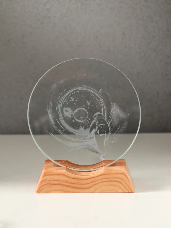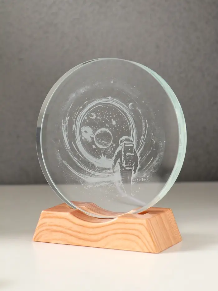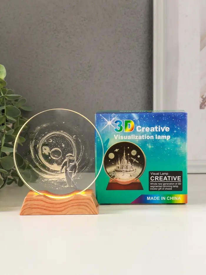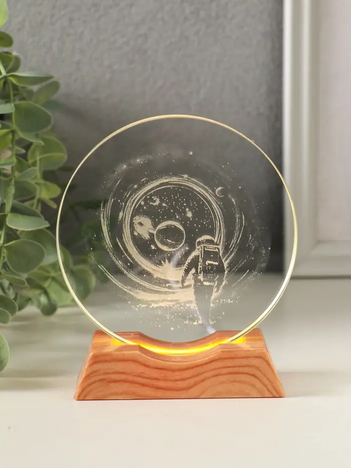 Сувенир стекло свет "Диск. Высадка космонавта на луну" 5хLED d=10 см, USB 10х4х11,4 см