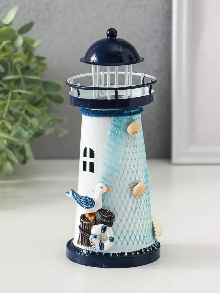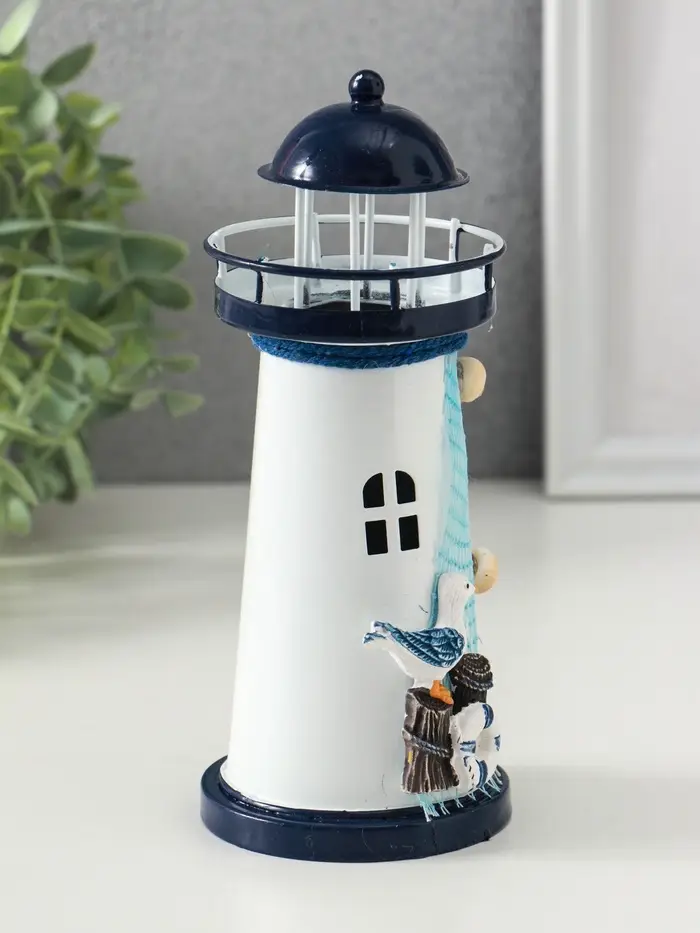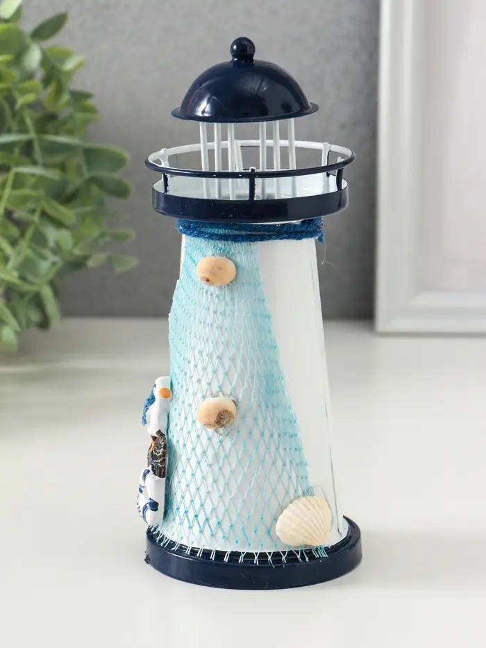 Сувенир настольный "Маяк с птицей" сетка, синий, 3хLR1130, RGB, LED 7,5х7,5х18 см