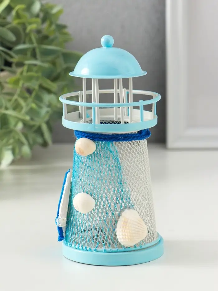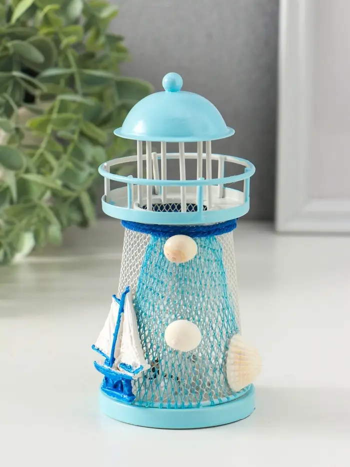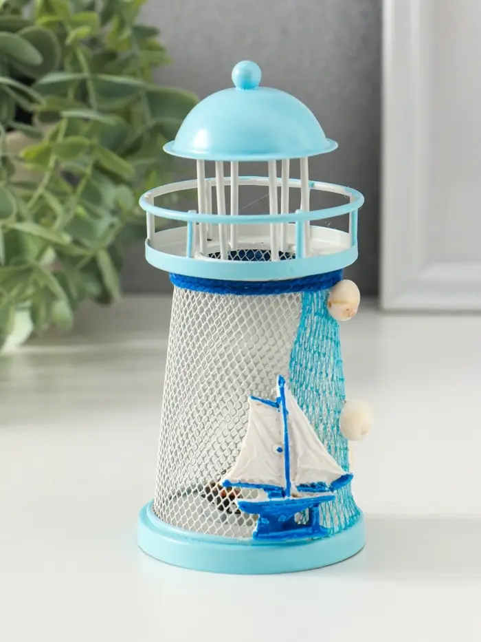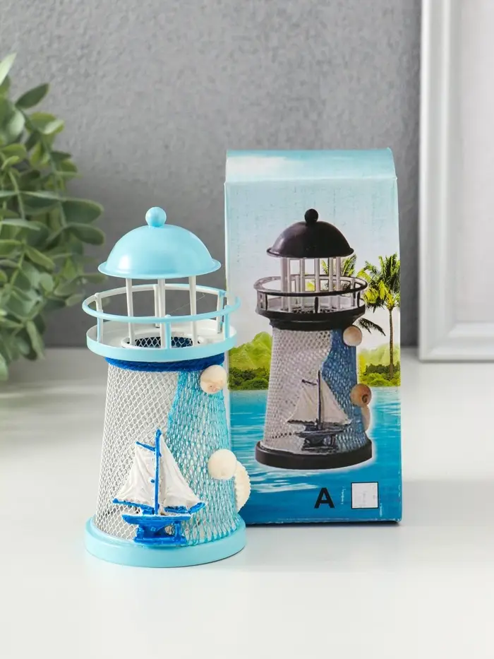 Сувенир настольный "Маяк с корабликом" сетка, голубой, 3хLR1130, RGB, LED 7,5х7,5х18 см