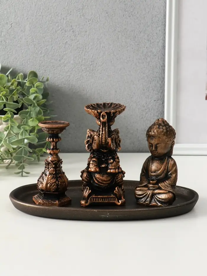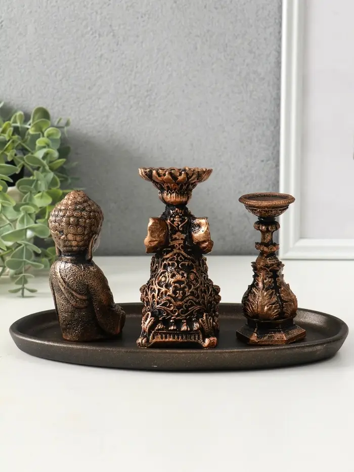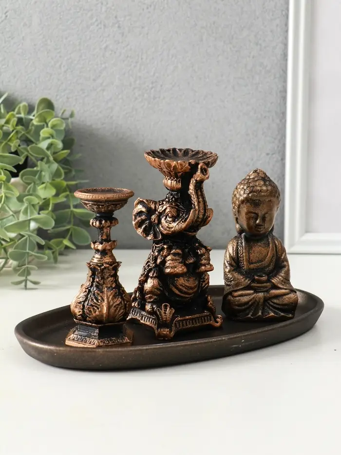 Набор фигур "Буддийский" на подносе, высота 13 см, цвет винтажная бронза