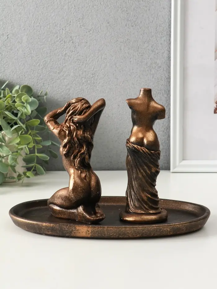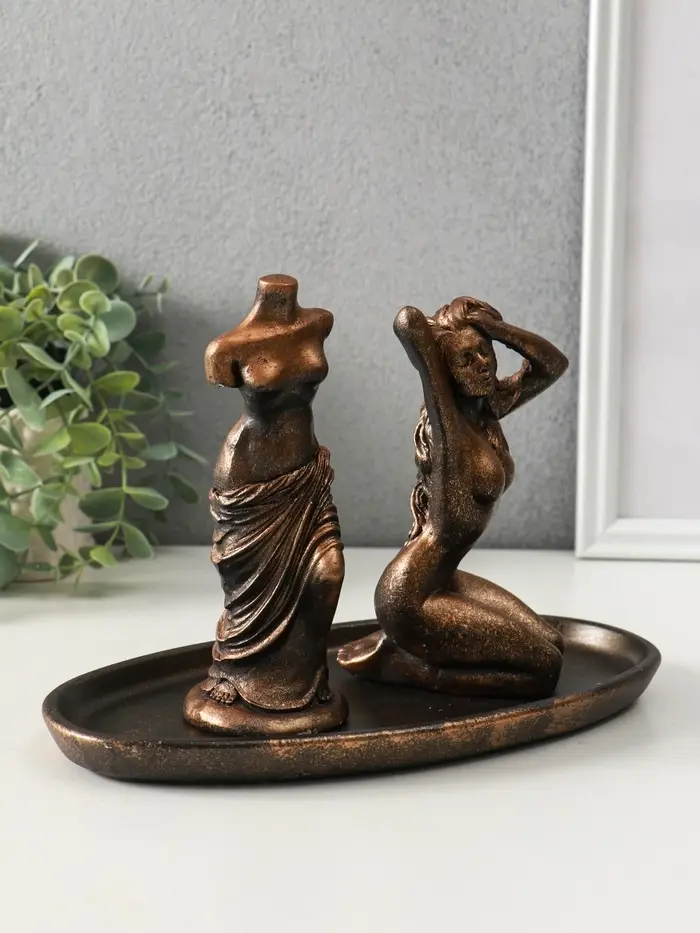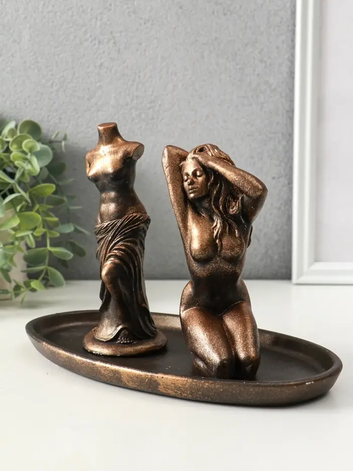 Набор фигур "Богини" на подносе, высота 16 см, цвет винтажная бронза