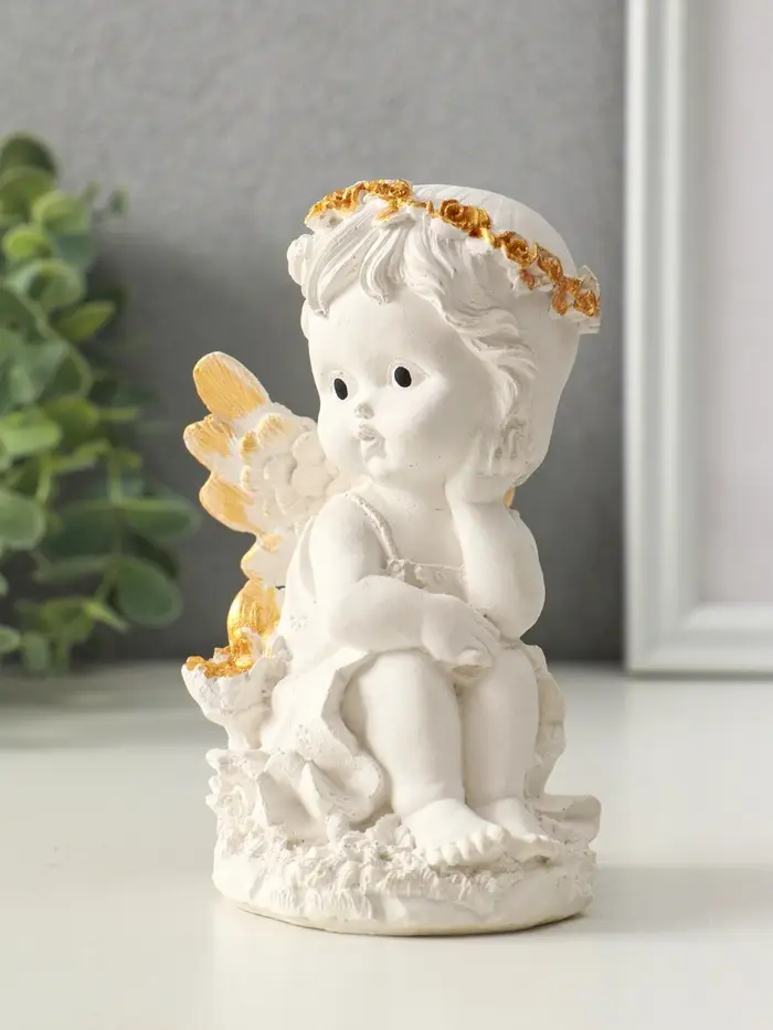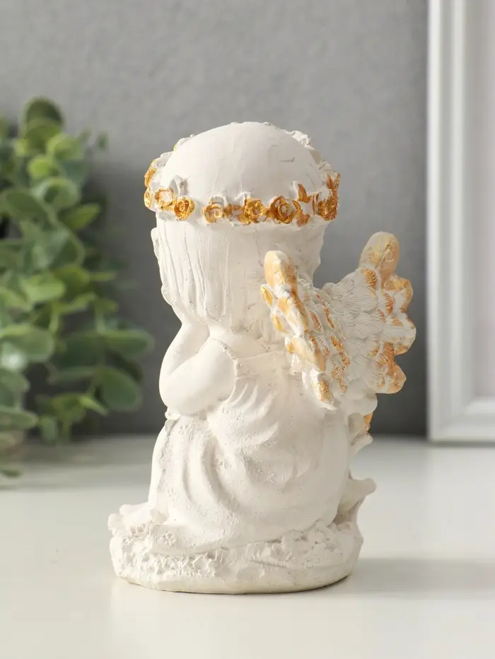 Фигура "Ангел в цветах", размер 13х8 см, цвет белый с росписью