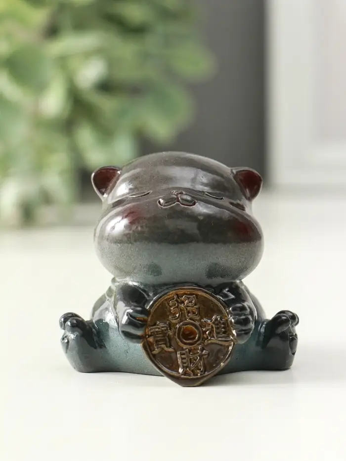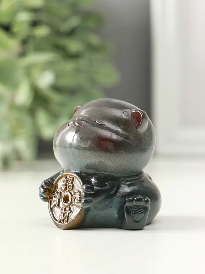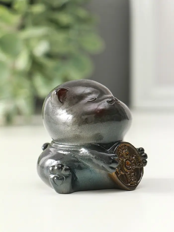 Фигурка для чайной церемонии "Кот с монетой привлечение богатства" меняет цвет 6х5,5х5,5 см 109269