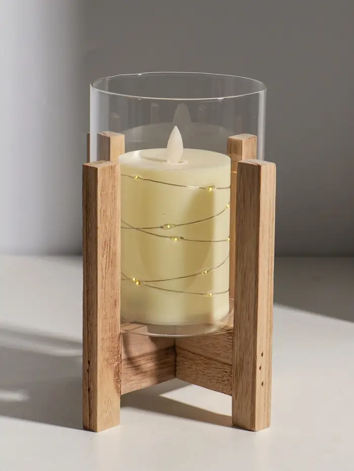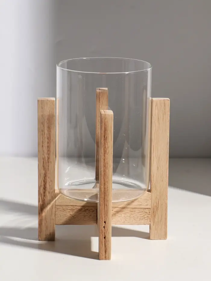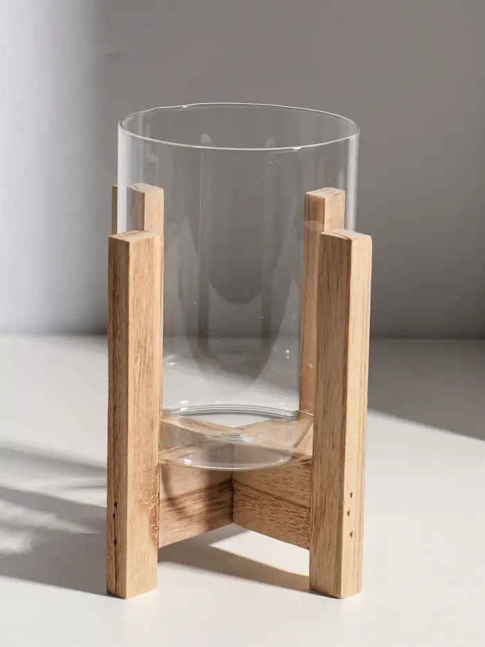 Подсвечник стекло, дерево "Рустик" d=9 см 16х16х21 см