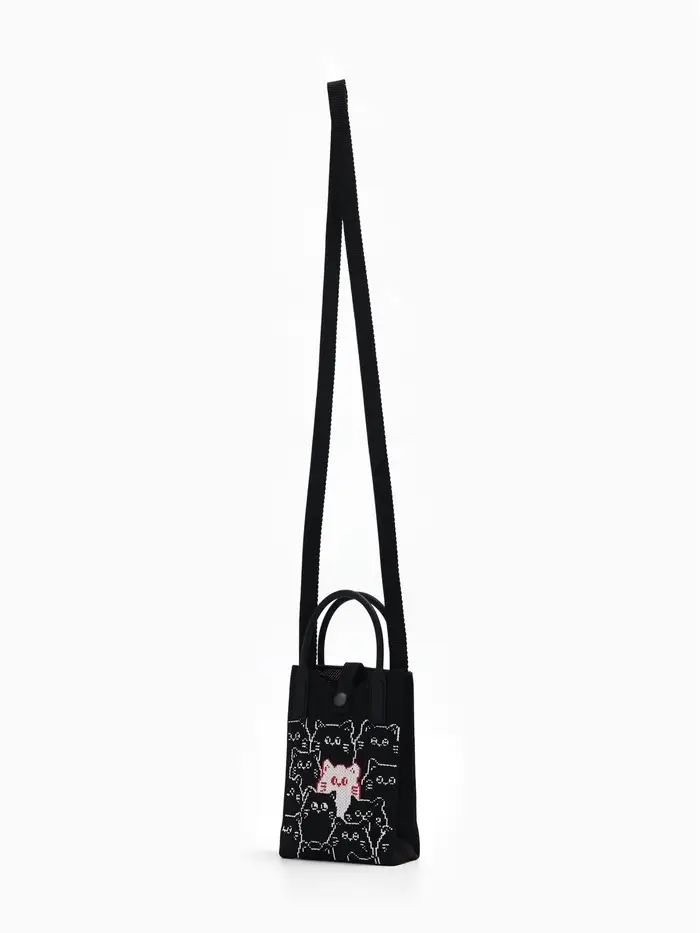 Сумка подр Коты, 12*4*17, отд на кнопке, дл ремень, черный