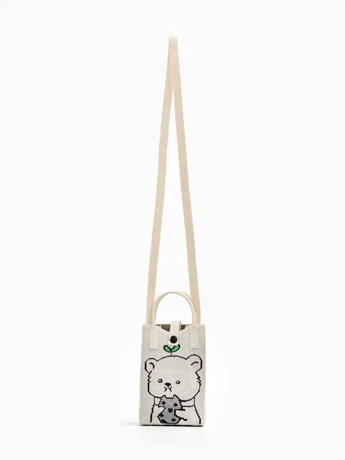 Сумка подр Мишка, 12*4*17, отд на кнопке, дл ремень, белый
