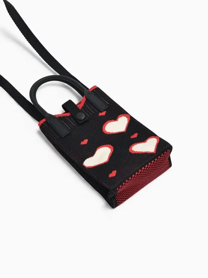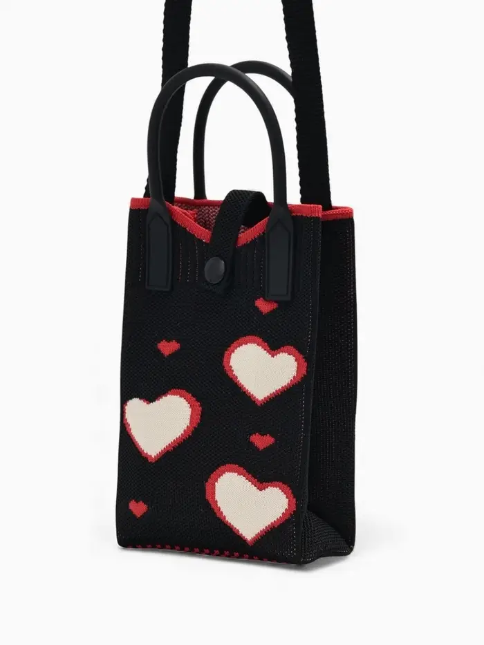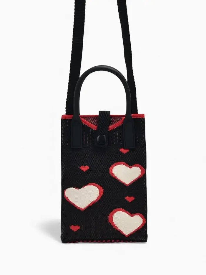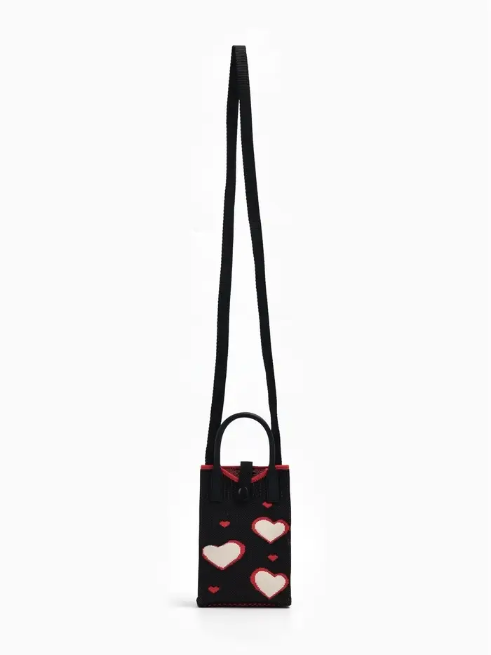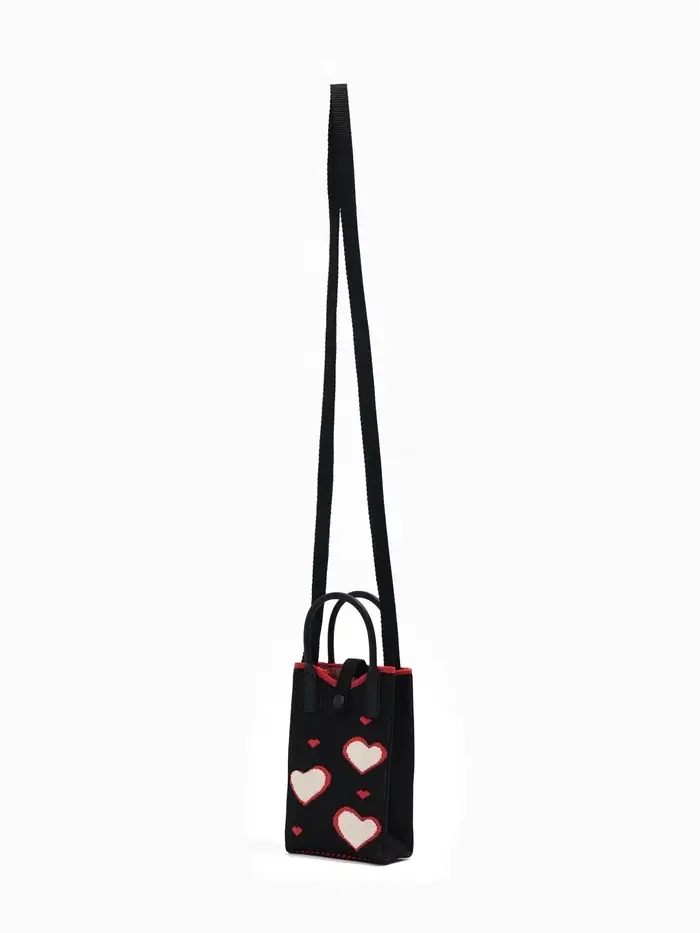 Сумка подр Сердца, 12*4*17, отд на кнопке, дл ремень, черный