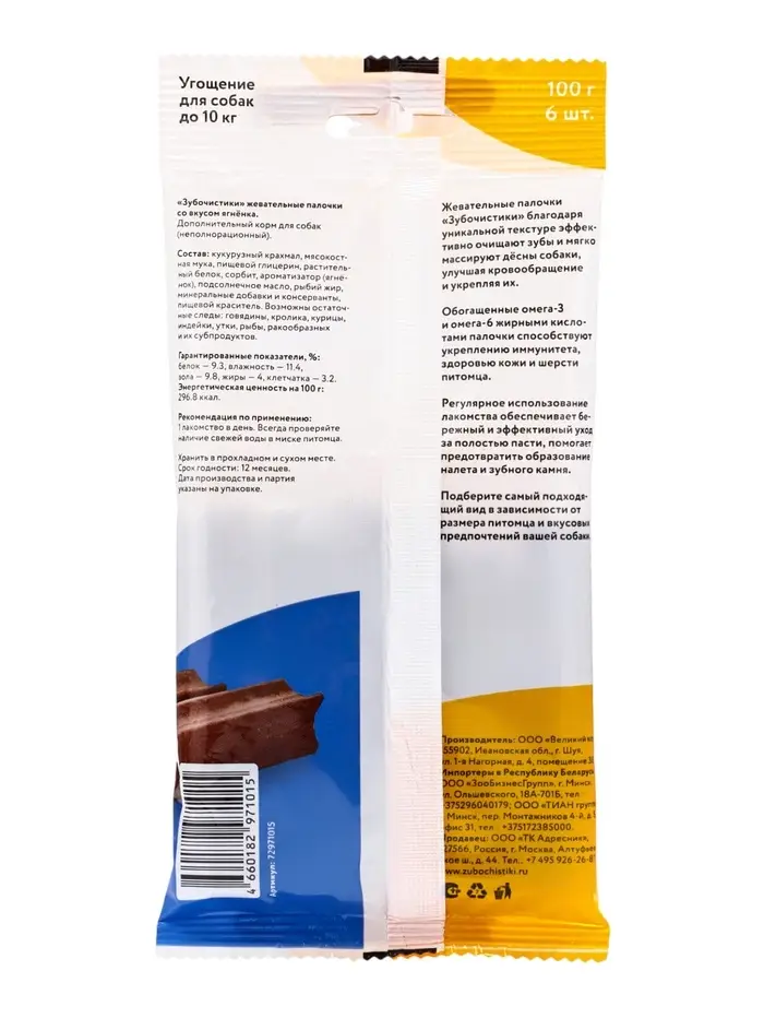 Зубочистики Жевательные палочки для собак мелких пород со вкусом ягненка, 100г