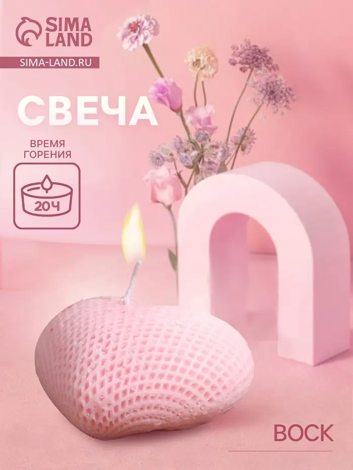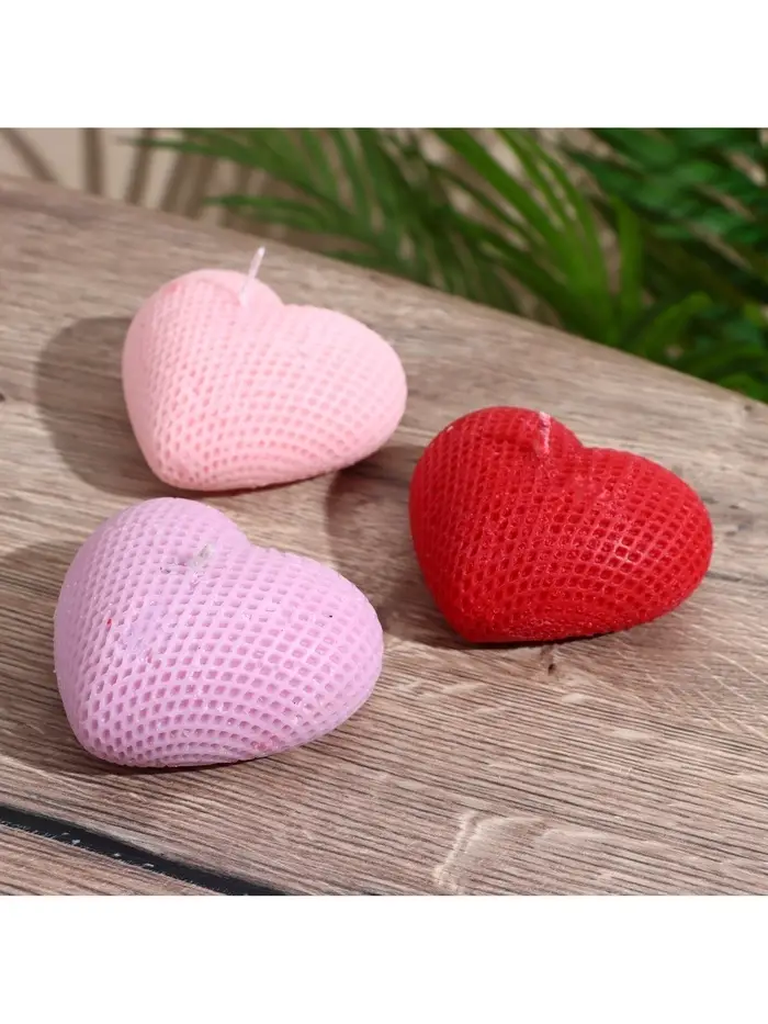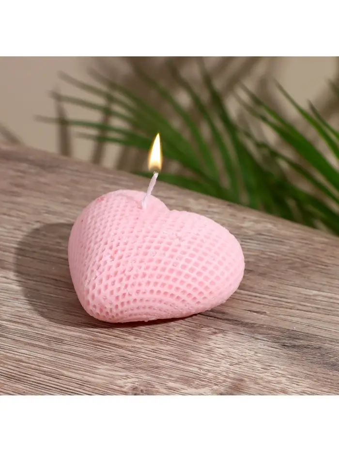 Свеча "Сердце в сеточку" 4х6х3 см, соевый воск, микс