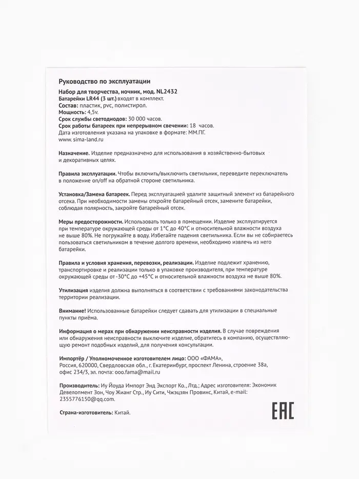 Страна изготовитель