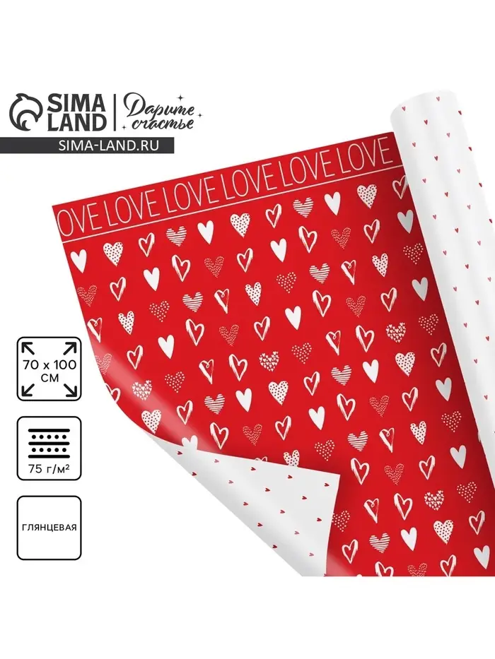Бумага упаковочная глянцевая двухсторонняя «С любовью», 70 х 100 см