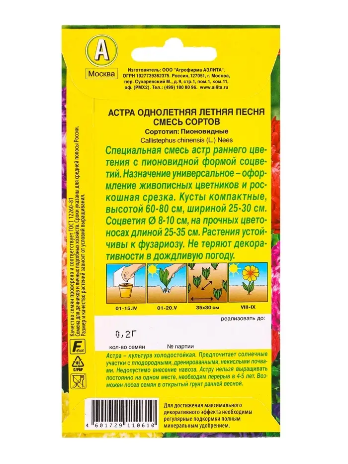 Семена цветов Астра Летняя песня, смесь сортов , Ц/П,0,2 г