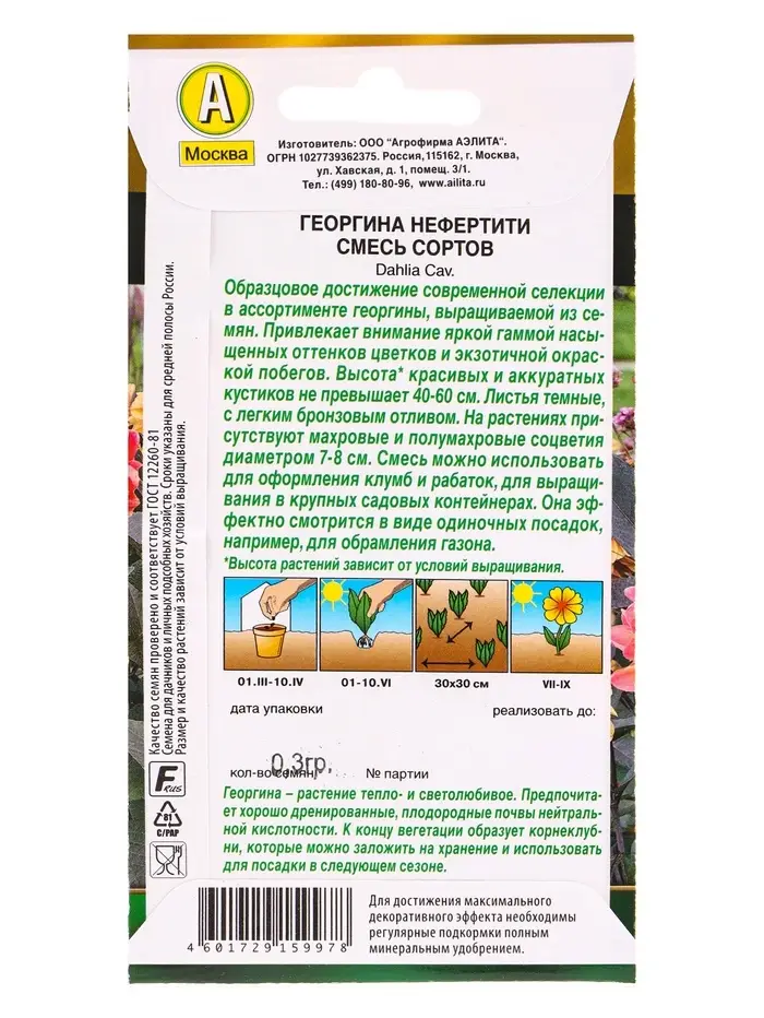 Семена цветов Георгина Нефертити, смесь сортов Золотая серия, Ц/П,0,3 г