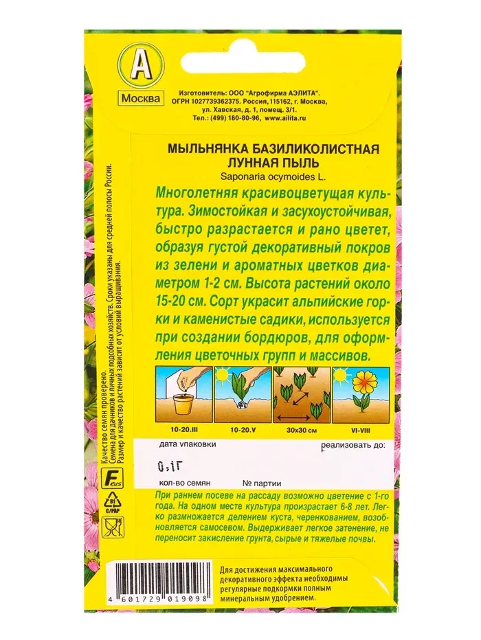 Семена цветов Мыльнянка Лунная пыль базиликолистная Мн, Ц/П,0,1 г
