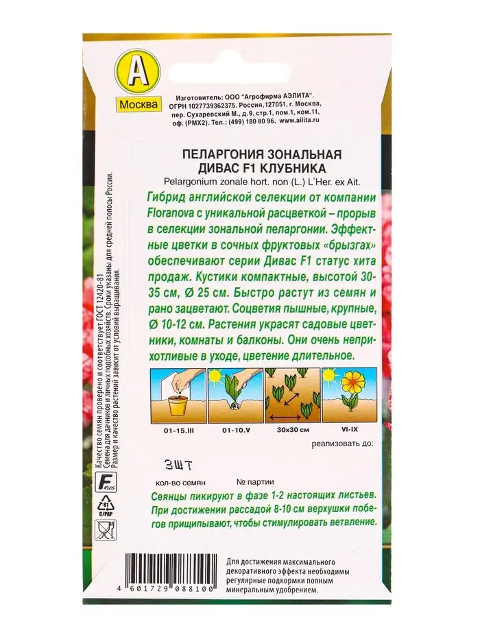 Семена цветов Пеларгония Дивас F1 клубника Мн Золотая серия, Ц/П,3 шт.