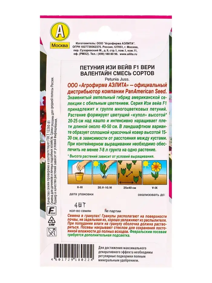 Семена цветов Петуния Изи вейв F1 вери валентайн, смесь сортов (драже) PanAmerican Wave, Ц/П,4 шт. 1