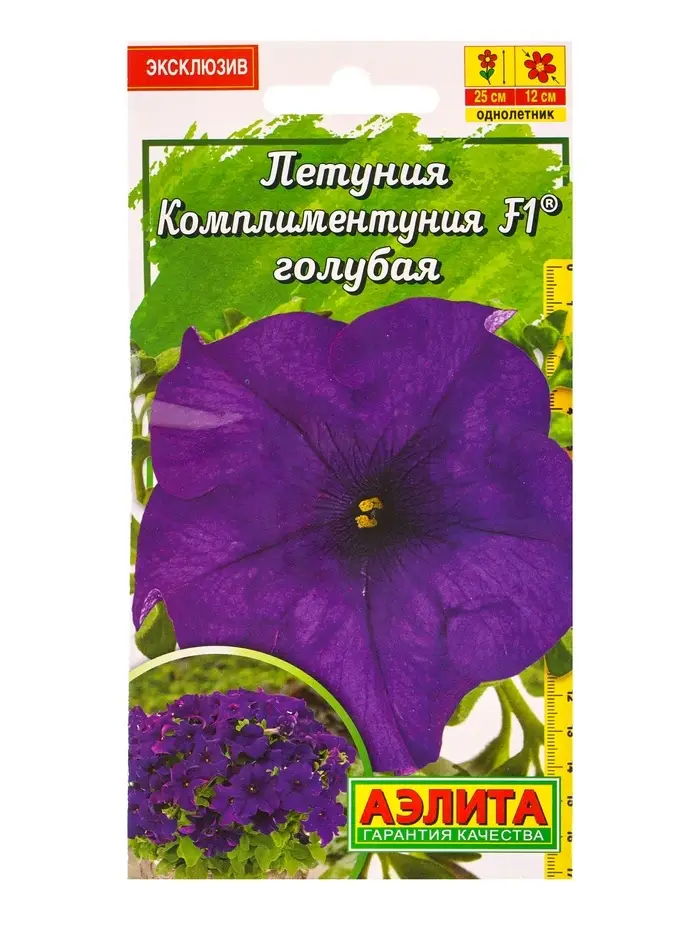 Семена цветов Петуния Комплиментуния F1 голубая крупноцветковая (драже в пробирке), Ц/П,7 шт. 10945