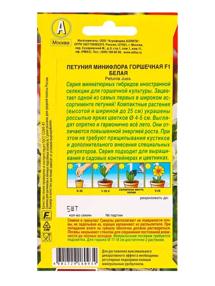 Семена цветов Петуния Минифлора горшечная F1 белая (драже в пробирке) Цветущий балкон, Ц/П,5 шт. 10