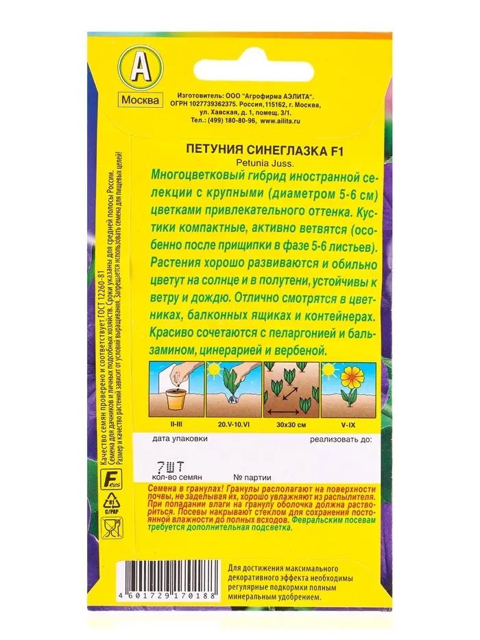 Семена цветов Петуния Синеглазка F1 многоцветковая (драже в пробирке), Ц/П,7 шт.
