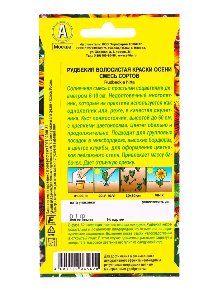 Семена цветов Рудбекия Краски осени, смесь сортов , Ц/П,0,1 г