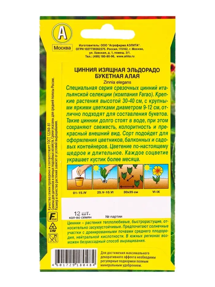 Семена цветов Цинния Эльдорадо букетная алая С. Farao, Ц/П,12 шт.
