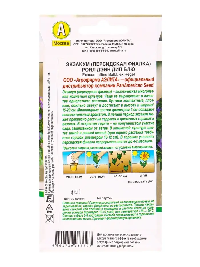 Семена цветов Экзакум (Персидская фиалка) Роял дэйн дип блю (драже) PanAmerican, Ц/П,4 шт. 1094596
