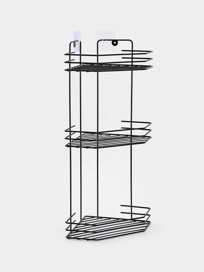 Полка для ванной угловая 3-х ярусная 20,5*20,5*52 см, цвет черный