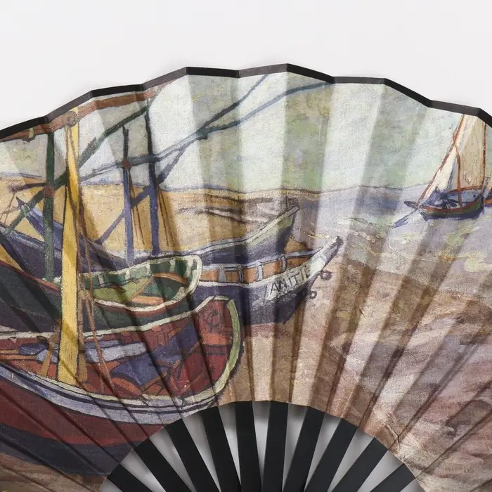 Веер пластик, текстиль h=26,5 см "Лодки на берегу"