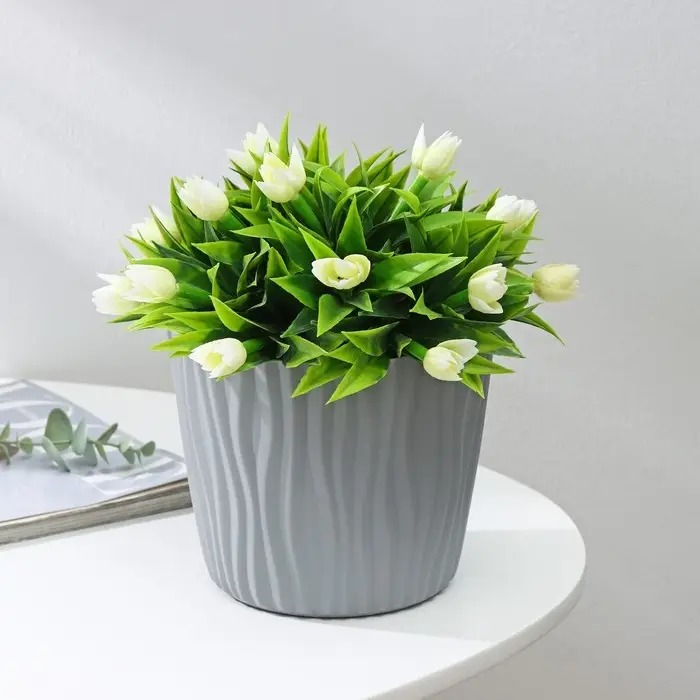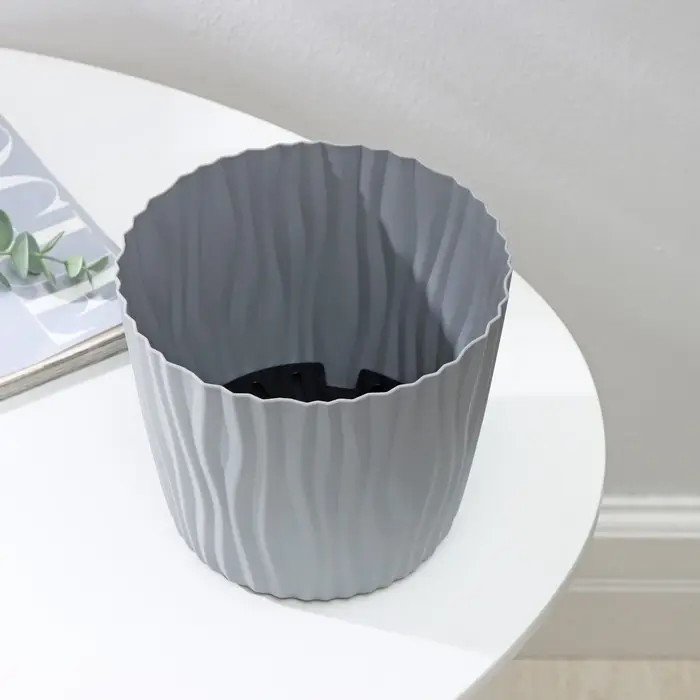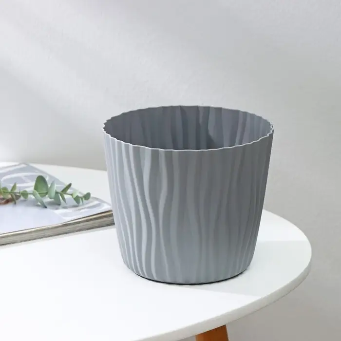 Кашпо для цветов со вставкой «Волна», 2 л, d=16 см, h=13,5 см, цвет серый