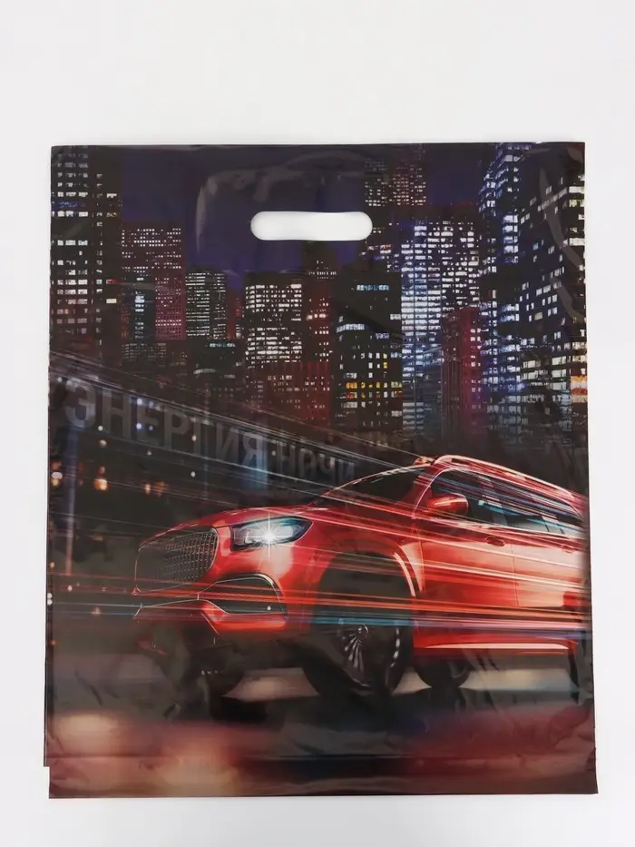 Упаковка с динамичным принтом для мужских подарков Подарочный пакет «Энергия ночи» сочетает черный фон с контрастными урбанистическими сюжетами. Формат XXL принимает крупные презенты для мужчин и подростков.