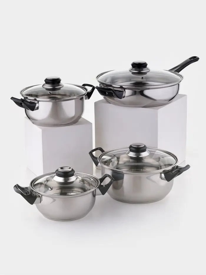 Набор 8 предметов "Черная ночь": кастрюли 1,5л 2л/3л, сковорода 24см, 4 крышки