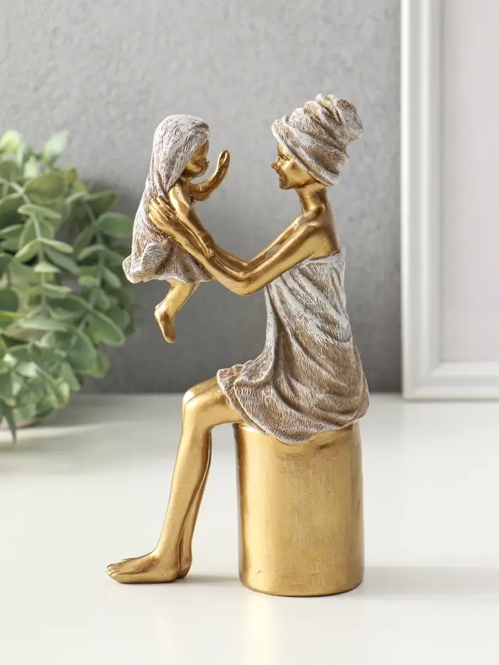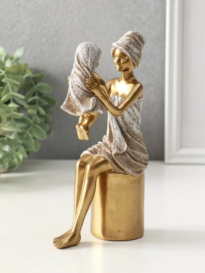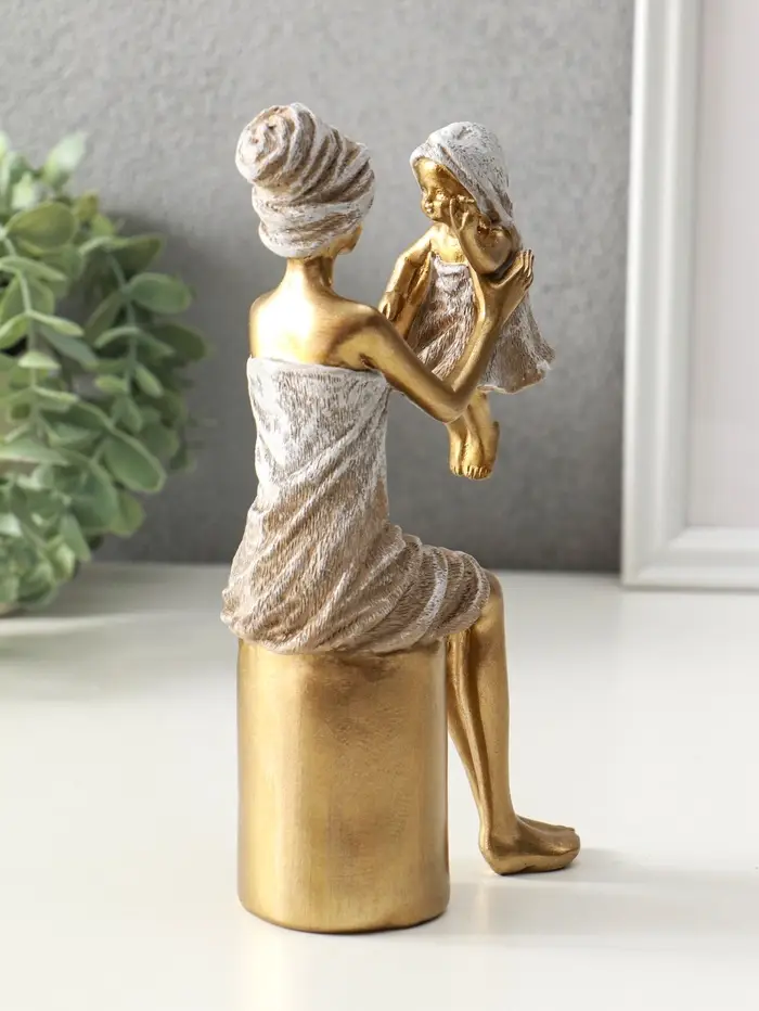 Сувенир полистоун "Мама с малышом - после водных процедур" 5,5х11х19 см