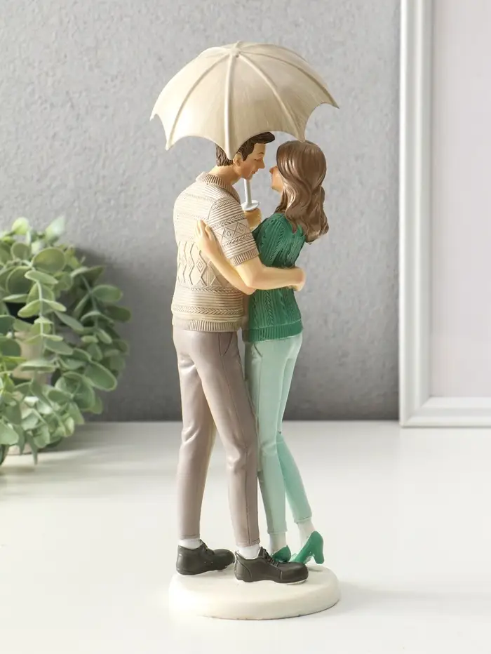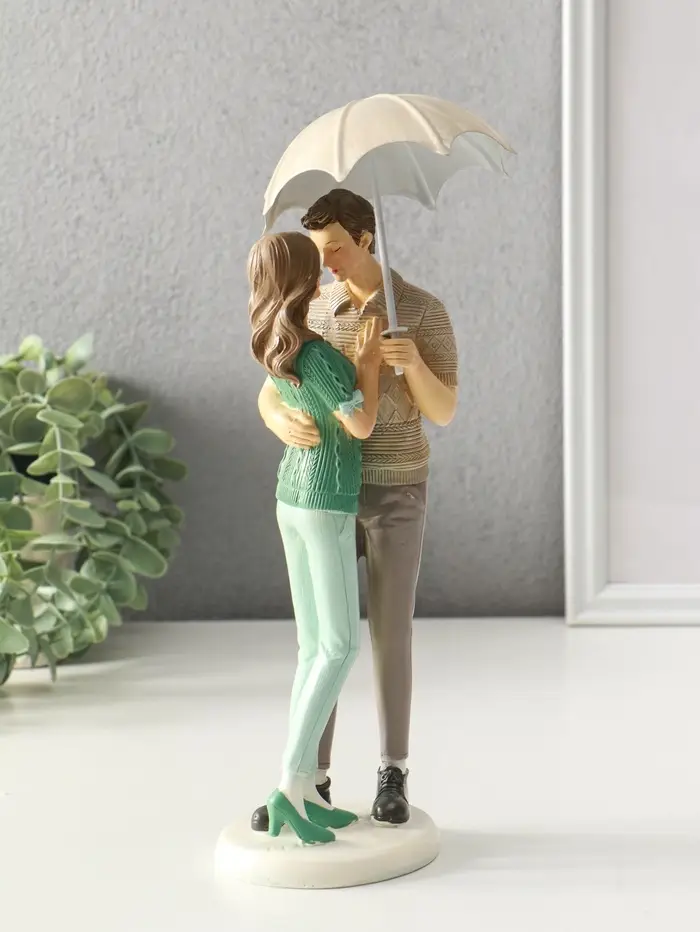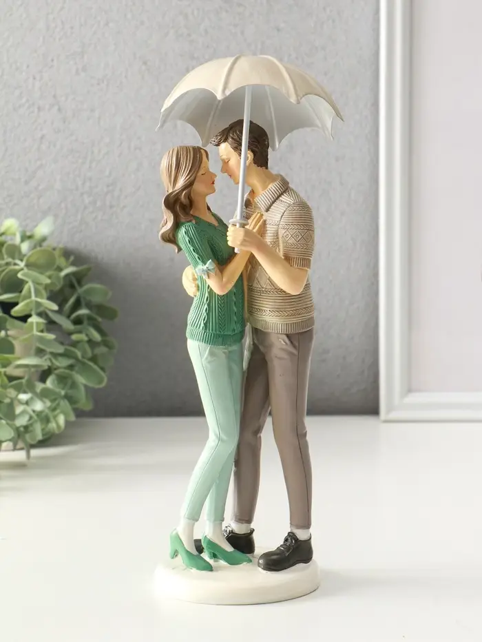 Сувенир полистоун "Влюблённые в вязанных джемперах, под зонтом" 8,5х9,5х25,5 см
