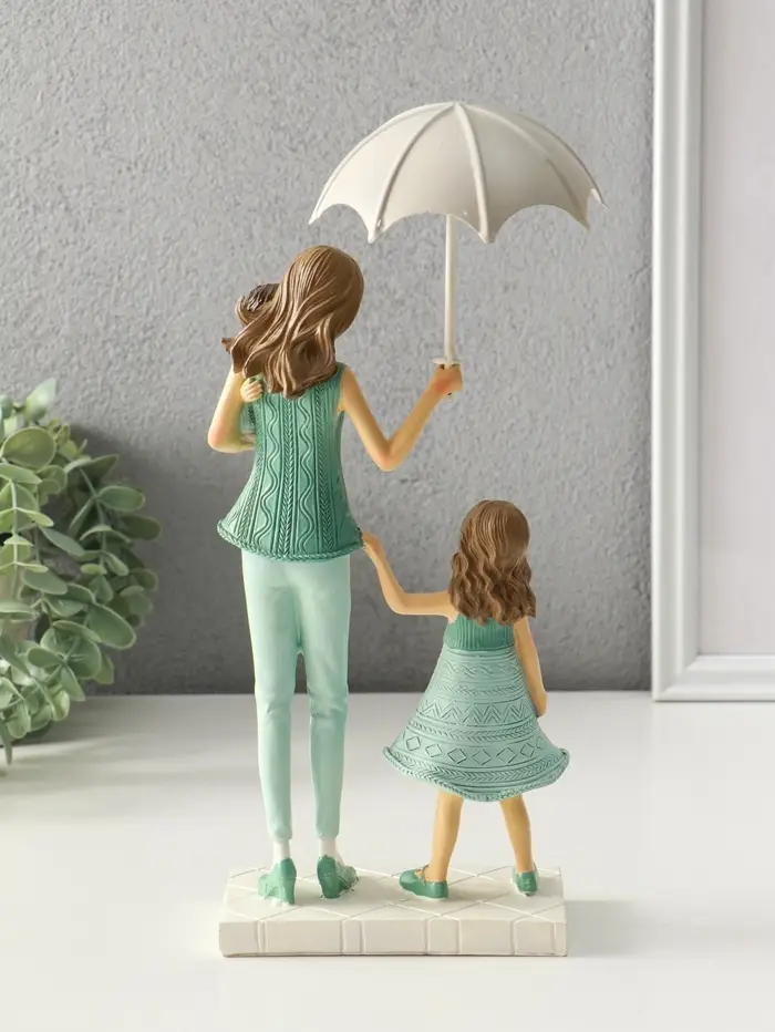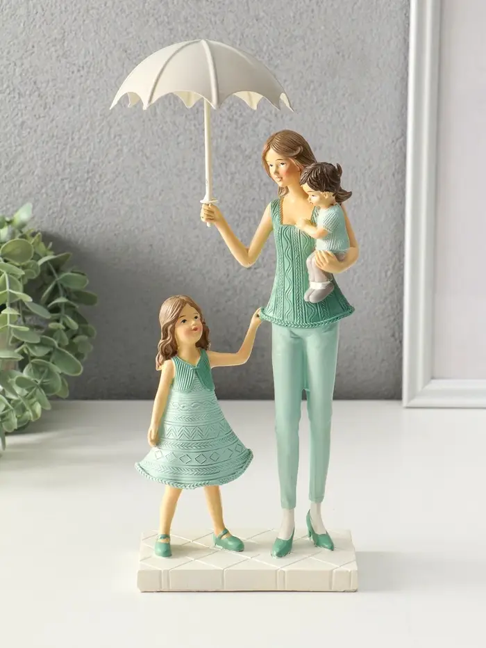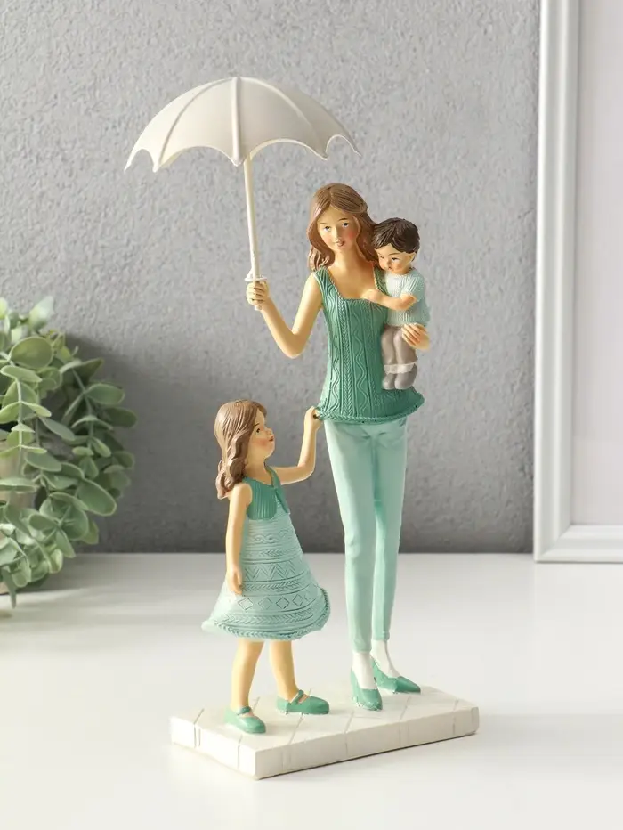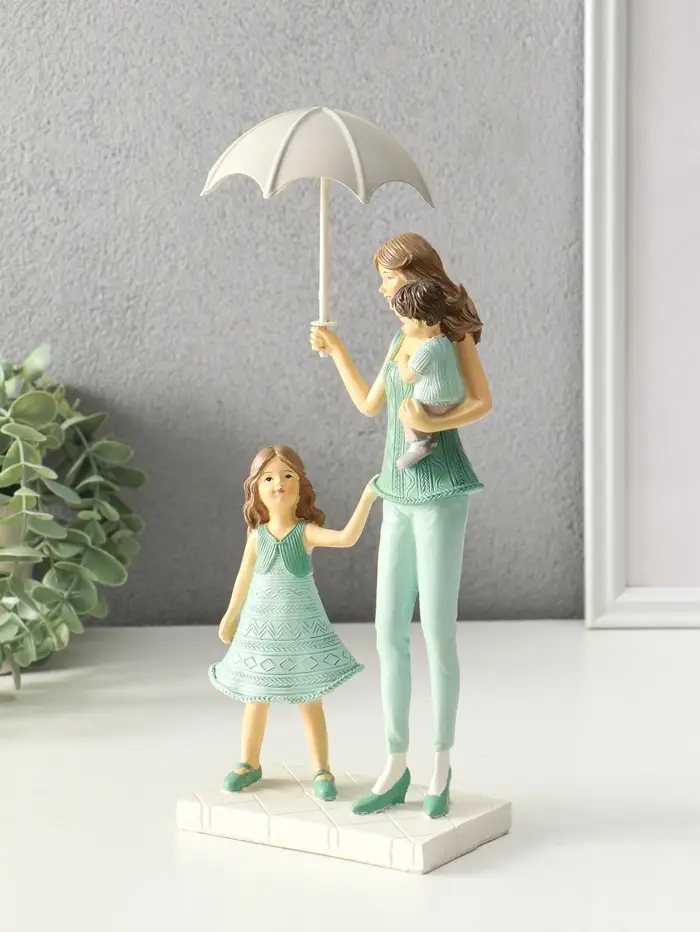 Сувенир полистоун "Мама с детьми в вязанных нарядах, под зонтом" 7,5х12,5х24 см