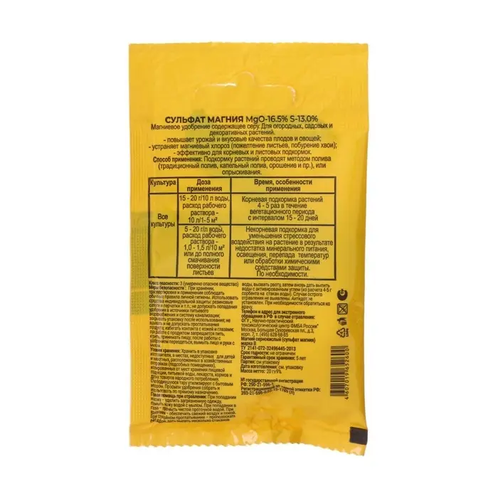 Удобрение минеральное Сульфат магния (магний сернокислый), 20 г