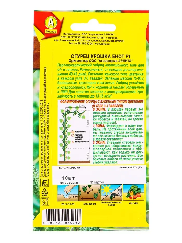 Семена Огурец Крошка енот F1 Ор. А Парт, Ц/П,10 шт.