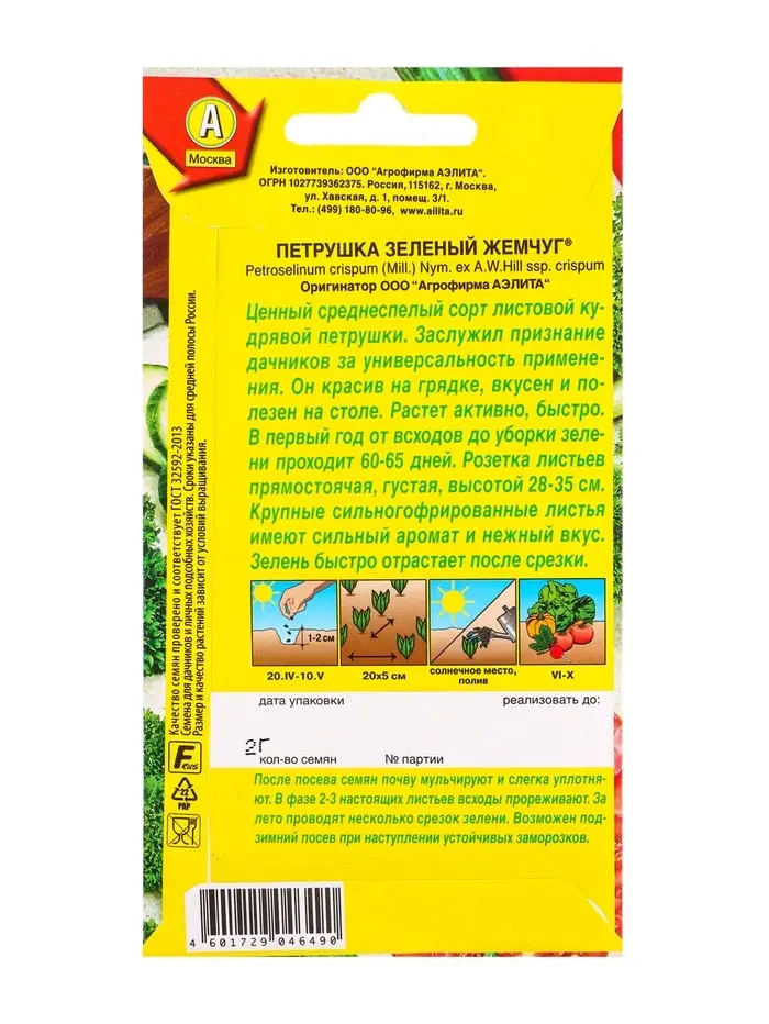 Семена Петрушка кудрявая Зеленый жемчуг , Ц/П,2 г