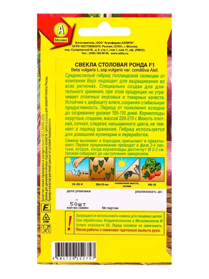 Семена Свекла столовая Ронда F1 Шед. мир. С., Ц/П,50 шт.