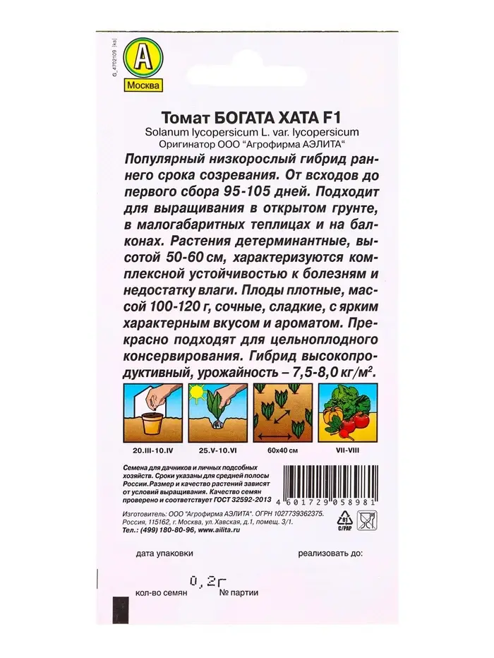Семена Томат Богата хата F1 Ор. А Р Золотая серия, Ц/П,0,2 г