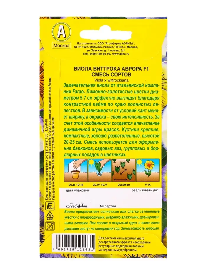 Семена цветов Виола Аврора F1, смесь сортов Дв С. Farao, Ц/П,7 шт.