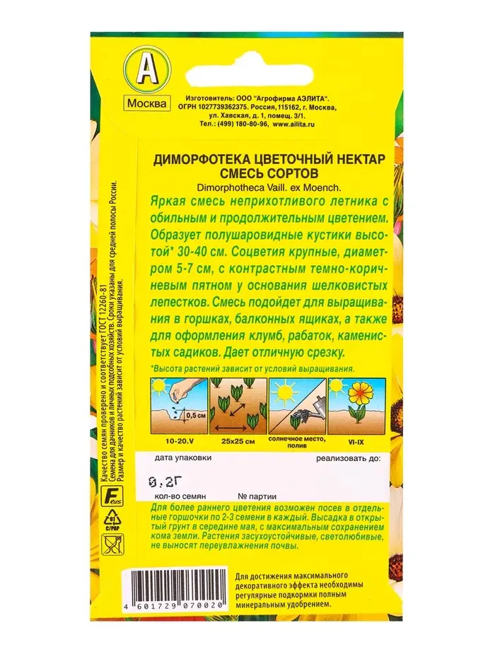 Семена цветов Диморфотека Цветочный нектар, смесь сортов , Ц/П,0,2 г