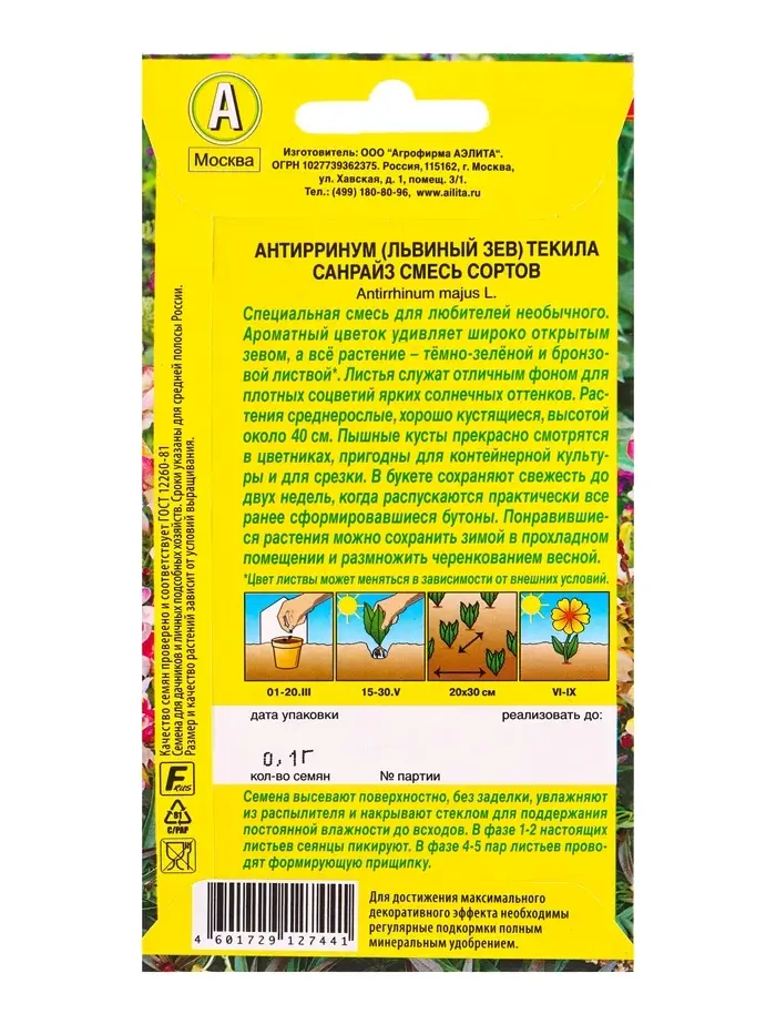 Семена цветов Львиный зев Текила санрайз, смесь окрасок , Ц/П,0,1 г