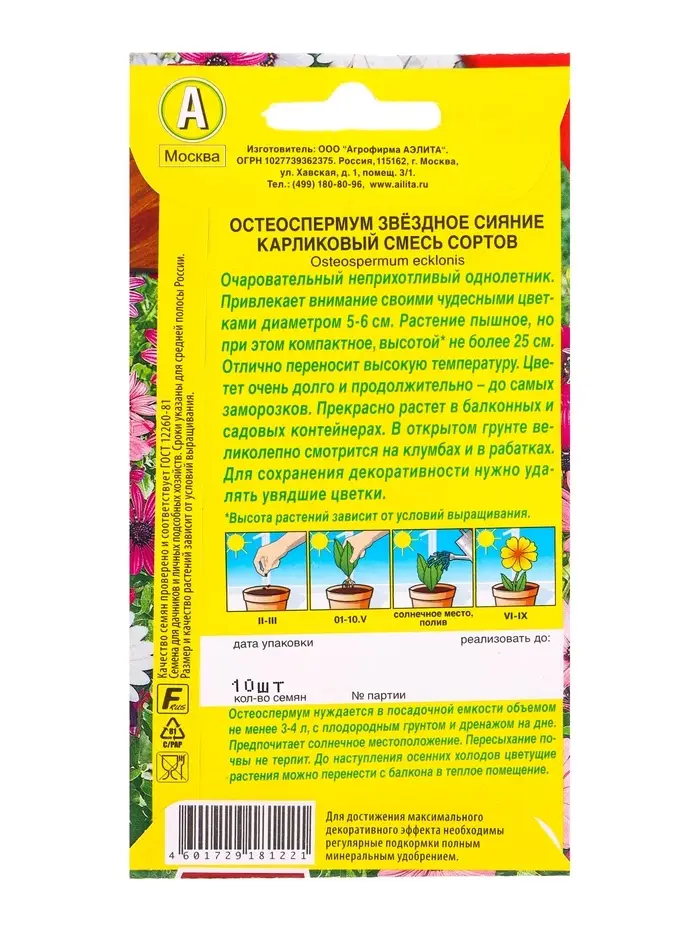 Семена цветов Остеоспермум Звездное сияние карликовый, смесь сортов Цветущий балкон, Ц/П,10 шт. 109